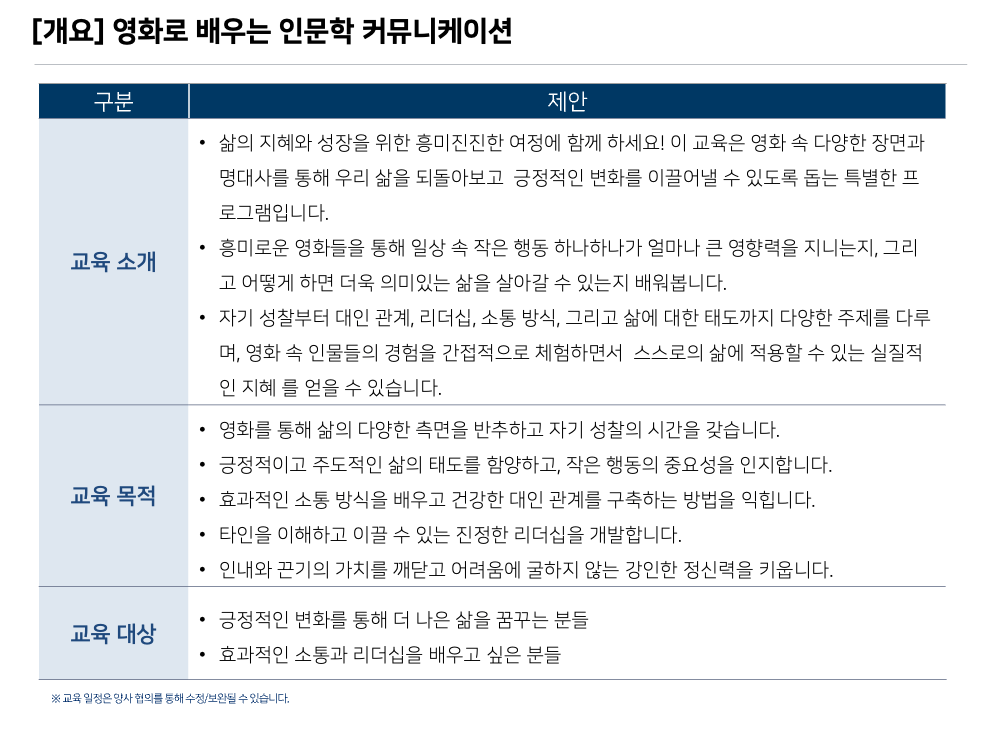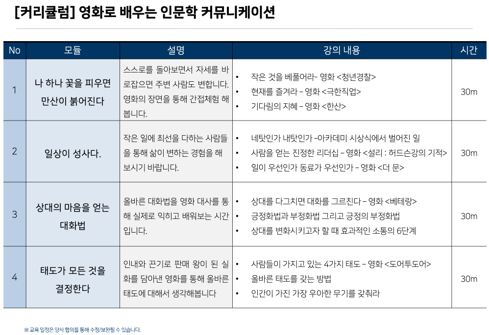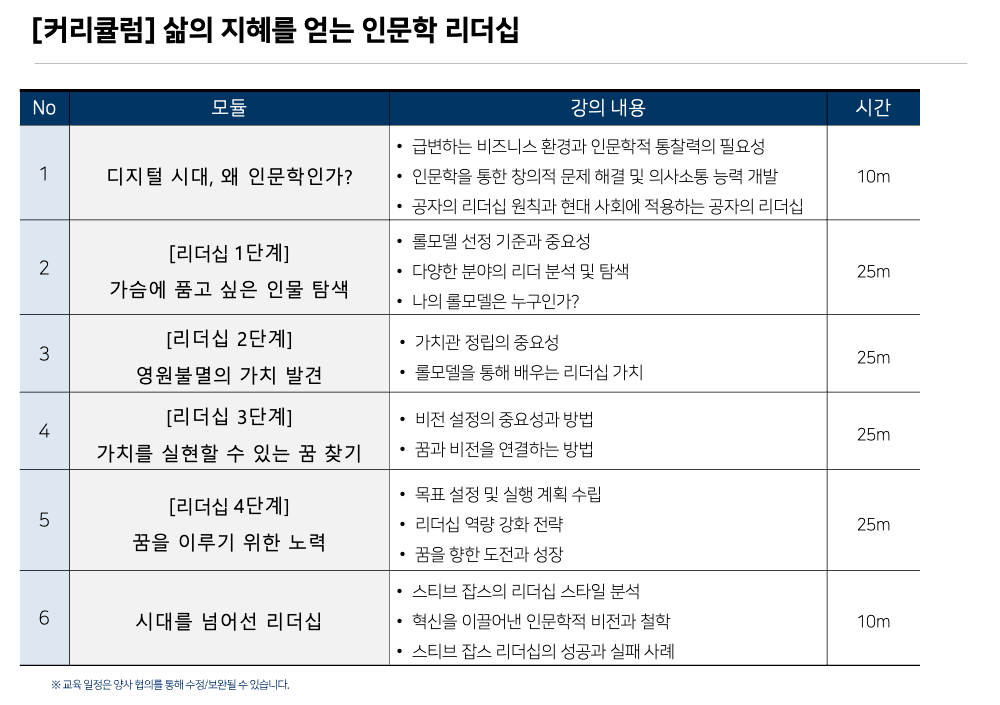 인문학/리더십/커뮤니케이션 커리큘럼