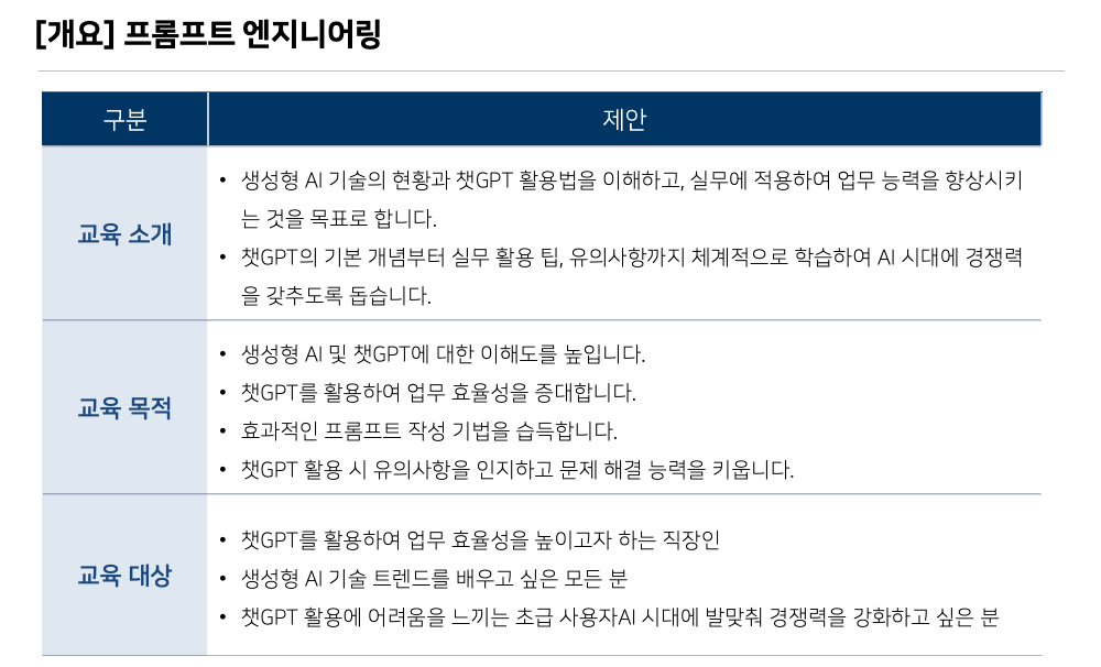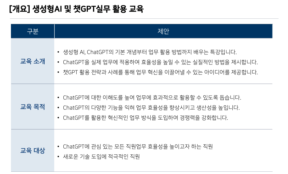▧ 생성형AI 및 챗GPT실무 활용 교육